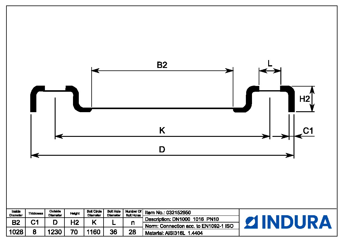 Gepresste Losflansch, DN1000, 1016, ISO, AISI316L