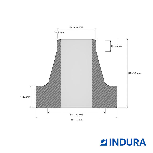 Weld-neck collar, EN 1092-1, T:34, PN10-40, DN15, 21,3, P250GH